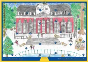 Dieses Jahr haben wieder über 150 Schülerinnen und Schüler der Grundschulen im Düsseldorfer Süden an unserem alljährlichen Malwettbewerb für das Titelbild des Adventskalenders 2025 teilgenommen. Die Gewinnerin Seraphina S. von der St. Cäcilia Grundschule hat mit Wasserfarben eine Winterlandschaft vor dem Schloss Benrath Für die Überlassung des Kalenderbildes danken wir sehr herzlich. Der Dank gilt allen Teilnehmern, Lehren und natürlich den Eltern.